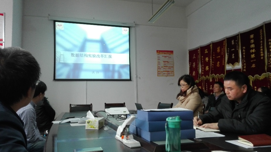 然后,洪伟老师进行了数据结构实验改革汇报。她从目标、内容及方法、改革成效及存在问题等不同角度介绍她在《数据结构》实验在教学工作进行的改革措施。最后李院长对洪老师的工作作出了肯定,并发表了“改革应该有持续”的建议;田院长、王院长也分别进行了点评和建议。接下来,胡恩博老师、马重明老师和李里程老师分别就《嵌入式应用系统开发》、《单片机原理与应用》、《中小学机器人》等课程改革进行详细的汇报。与会的领导和老师也根据上述老师汇报情况发表了自己看法、感想和建议。