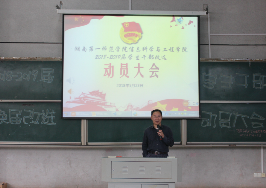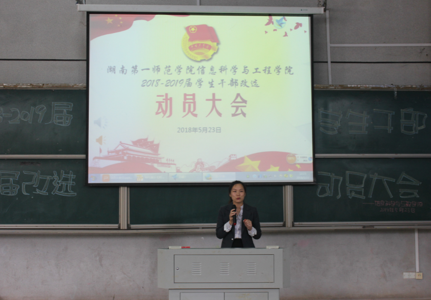 (通信员 向钰雪 邓力超 陈思迁)为推动我院2016-2017届学生干部换届改选工作顺利完成,5月23日中午,36365最新线路检测在文报厅举行了2018-2019届干部换届改选动员大会。学院党总支书记王杰文教授、党总支副书记易利老师学工办关红儒老师、唐瑞鸿老师、团学会全体学生干部和助理以及各班班长、团支书参加本次会议。会议由唐瑞鸿老师主持。